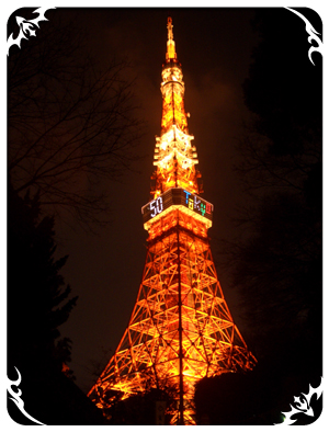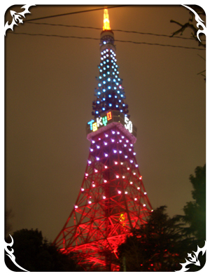 聽日本友人講,今年是東京鐵塔50週年,所以8時開始10分鐘鐵塔會由本身的橙紅色變成彩虹色~