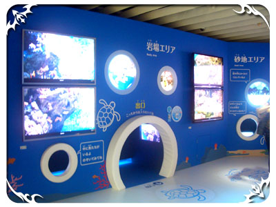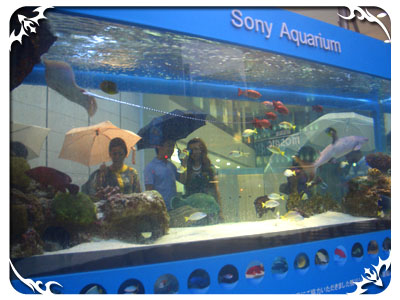 之後到有樂町及銀座的東京寶塚劇場。本來想替友人看看有什麼好東西,但是完全一曉不通…U_U 出到來橫風橫雨,衝鋒陷陣地越過幾個街口,但太辛苦了,所以入了sony building行一行,玩印章搜集遊戲。原來現在sony和沖繩水族館有聯合event,用了幾十部sony的大plasma影著沖繩水族館的魚游來游去,十分壯觀!8樓更有3Dmovie看,戴上立體眼鏡後魚群好像在面前,伸手可摸到一樣!條鯨鯊游過來時真的想避開~XDDD 館外還有真的來自沖繩的魚哦~